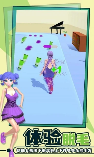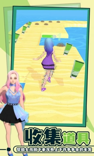 2、通过跑酷收集脱毛膏,为角色褪毛取得胜利。