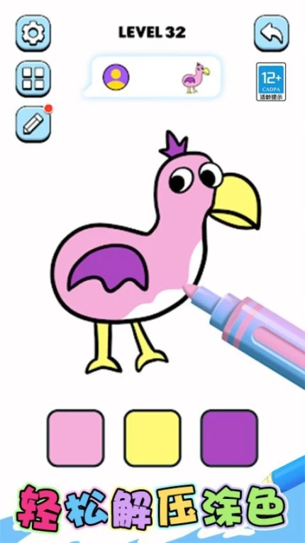 1. 自由绘制与涂色:根据创意或关卡要求设计图案,添加装饰细节。