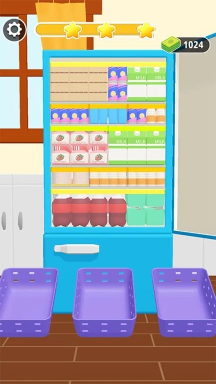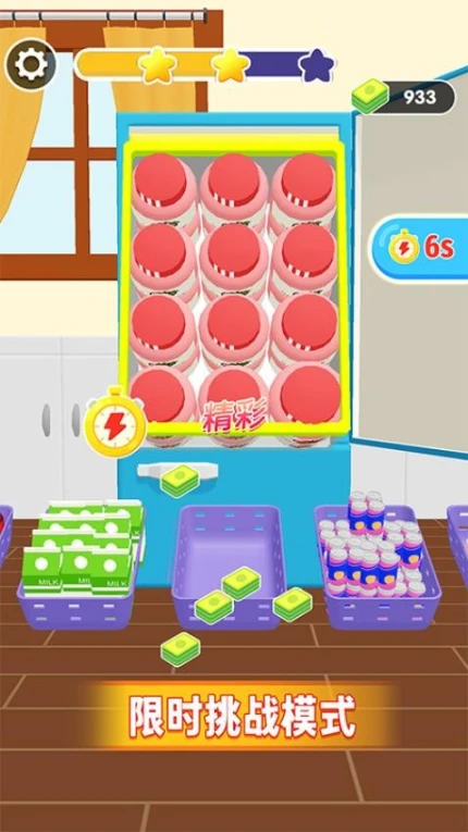 5.自由挑战,将物品归类整齐放入冰箱,获取大量奖励。