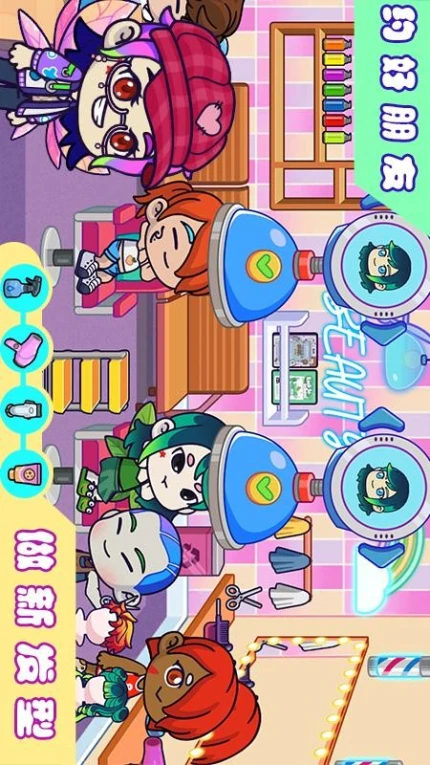 麦加小镇设计发型制作、美食烹饪等职业模块,玩家可使用烫发棒、厨房工具等道具完成任务,真实感受不同职业的工作流程。