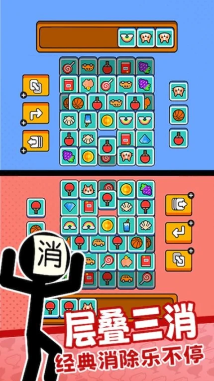 复刻拍手板、井字棋等经典玩法,同时加入双棋盘消除、奇葩角色控制等原创内容,形成新旧融合的独特玩法矩阵。