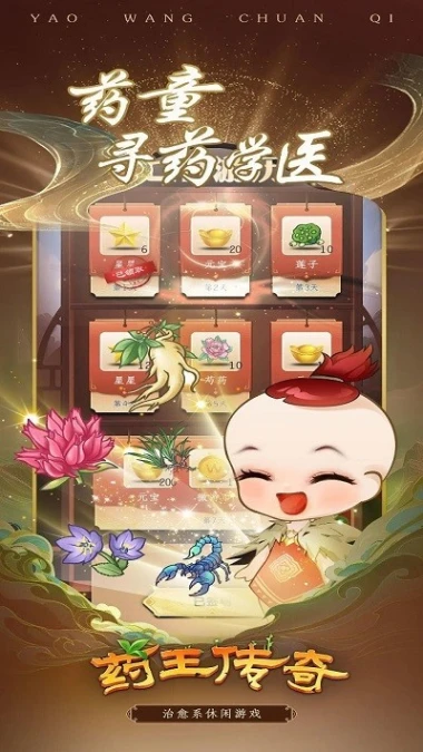 《药王传奇》是一款别具一格的休闲益智消除游戏。它以药草为核心元素,构建出独特的三消玩法,让玩家在消除乐趣中认识多种药材。玩家在游戏中要完成不同关卡挑战,逐步提升研药水平,朝着药王目标迈进。游戏中还有可爱药童相伴,一起上山采药、制药。而且每天都有新的挑战关卡,登录即可解锁,能让玩家持续感受新鲜体验。