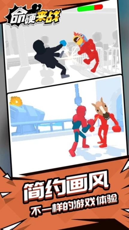 蓝天下载网为您免费提供命硬来战下载,这款动作冒险游戏以魔性画风为核心特色,通过物理引擎打造爽快格斗体验。玩家可操控多种武器组合,在随机生成的关卡中解锁丰富道具,体验从简单操作到高阶技巧的进阶过程。游戏融合休闲益智元素与硬核战斗机制,适合追求刺激与放松并重的玩家群体。