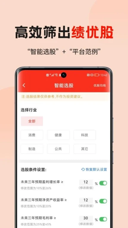 平台的智能选股功能可高效筛选优质股票,帮助用户节省选股时间,提高投资效率。