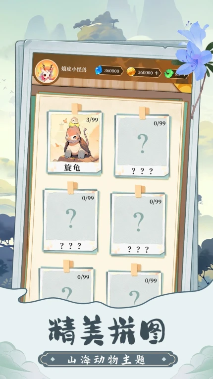 采用3D渲染技术呈现神兽立体形象,拼图碎片融合粒子特效,营造奇幻视觉盛宴。