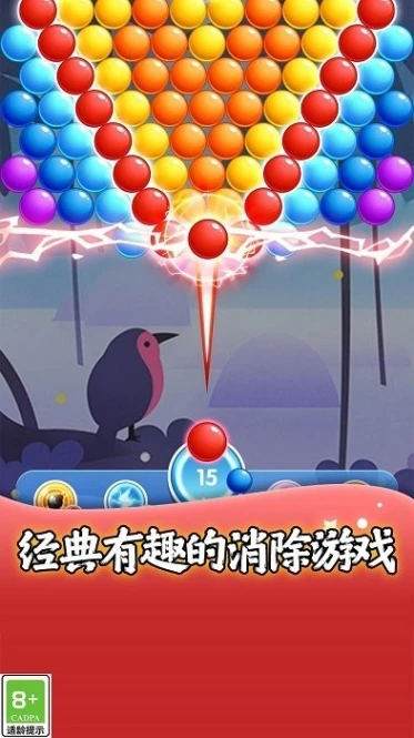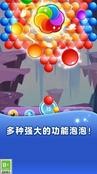 1、基础消除:通过三消机制击破单色泡泡,累积分数解锁下一关卡。 2、道具使用:金币商城可购买颜色转换器,改变弹珠属性突破困局。 3、连击策略:利用泡泡破裂后的连锁反应,创造高分连击记录。 4、关卡挑战:部分特殊关卡要求在限定步数内达成特定消除目标。 5、组合技开发:将范围爆炸道具与彩虹弹结合,实现大面积区域清除。