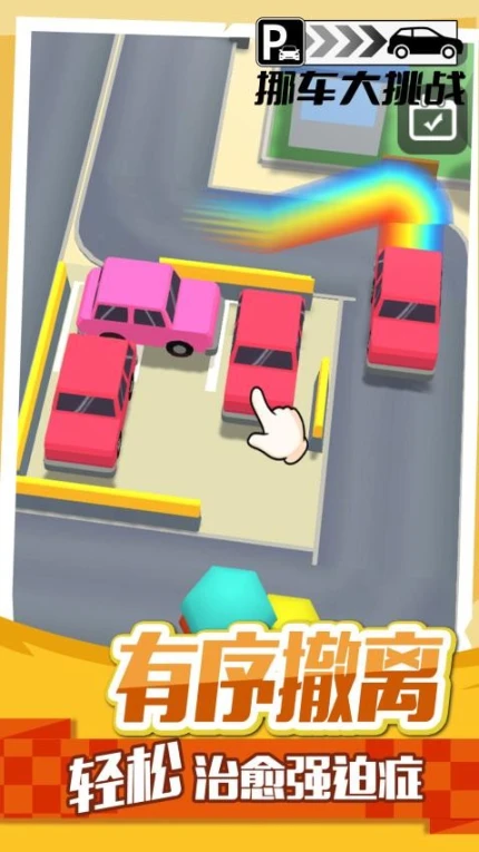 3.轻松休闲体验:有序移动车辆,过程轻松,能有效治愈玩家的强迫症,带来舒适感受。