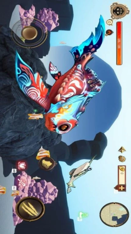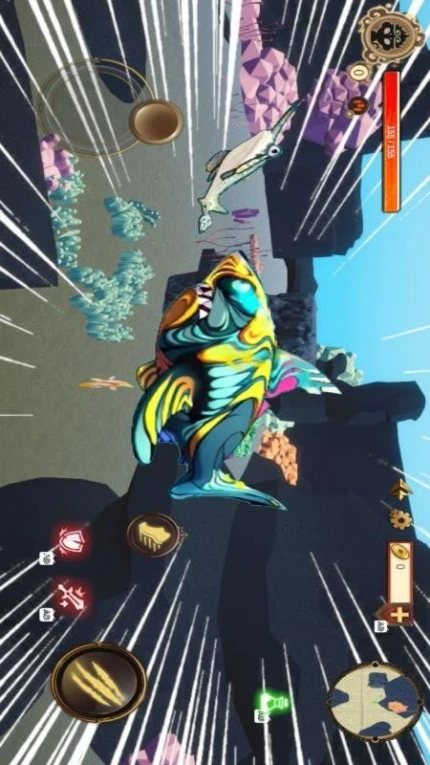 1.基础生存:通过吞噬小型鱼类维持生命值,需避开巨型海兽巡逻路线