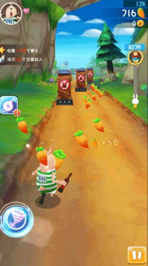 2.逃亡兔的逃亡动作十分恶搞,配合游戏道具,是游戏的一大亮点。