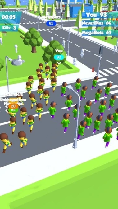 人类城市冲突是一款极具趣味性的休闲益智游戏。在游戏里,玩家置身于一座特殊的城市竞技场,这里没有车辆干扰,可自由指挥队伍前行。游戏任务包含击杀目标,队伍击杀敌人数量越多、人数越多,积分就越高。玩家能获取团体技能减少敌方伤害、同化敌人增加己方人数。同时,要小心城市中的危险区域,合理规划进攻路线,结合团队力量突破敌人防线,包围敌人,体验紧张刺激的竞技过程。