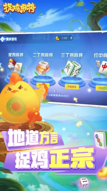 蓝天下载网为您免费提供捉鸡麻将下载。这款棋牌桌游以地道贵阳捉鸡麻将为核心,融合血战到底式玩法,呈现精美画面与流畅操作体验。游戏创新引入“捉鸡”“金鸡”等特色元素,108张牌组含条筒万三色,支持道具收集与多模式竞技。玩家可畅享闷豆、冲锋鸡等本地玩法,单机联机自由切换,金豆奖励机制增添刺激感。作为一款兼具传统韵味与创新设计的在线娱乐游戏,捉鸡麻将凭借防作弊系统与诙谐方言对话,成为棋牌爱好者的新选择。