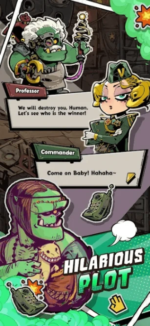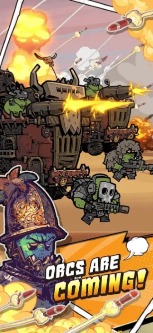 采用废土美漫画风呈现竖版画面,兽人角色设计融合粗犷线条与夸张表情。移动堡垒的机械细节与战场爆炸特效营造沉浸式视觉体验。