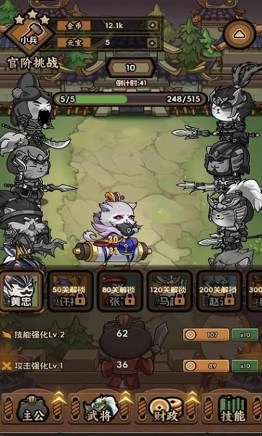1.主公官阶挑战玩法,玩家可逐步提升官阶,获取更多资源,增强自身实力。