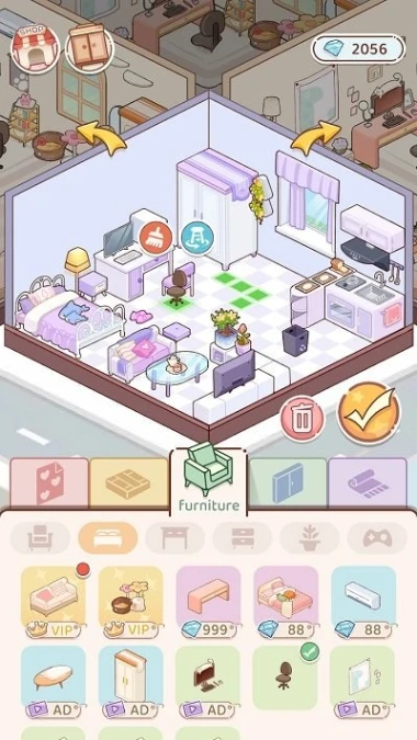 4.解锁多种玩法模式,自由搭配家具放置房间,满足玩家多样化的游戏需求。