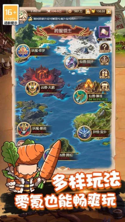 ◆军团科技体系提升资源收益效率,配合神兵装配系统实现战力倍增。