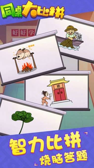 蓝天下载网为您免费提供同桌大比拼下载,同桌大比拼是一款精彩的休闲益智答题单机游戏。玩家将扮演学生,与同桌同台竞技,开启紧张刺激的知识较量。游戏涵盖数学、语文、英语等多学科知识,通过数学题、逻辑推理、记忆力测试等方式闯关。在诙谐幽默的答题过程中,玩家需观察图片、记忆名字,做出正确选择。此外,游戏还支持和小伙伴对战,七种玩法各有特色,图示搞笑、谐音梗猜题等元素让游戏趣味十足。成功解谜完成任务,即可获得丰厚游戏奖励,感兴趣的玩家别错过!
