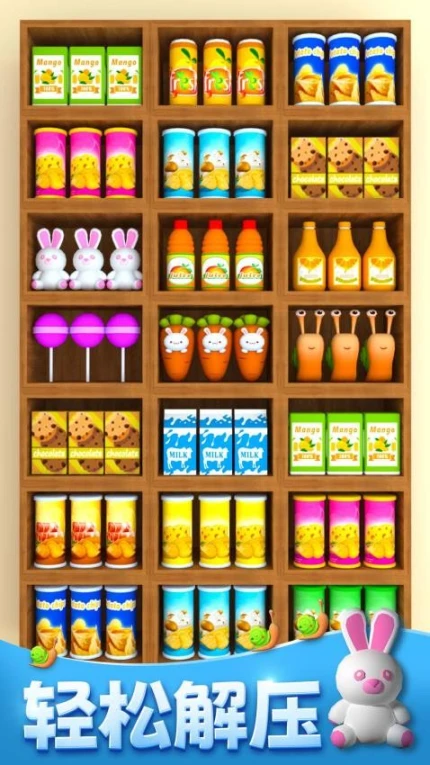 玩家能尽情体验货柜消除过程,通过整理更多物品,即可快速展开消除,感受消除的畅快。2、轻松解压