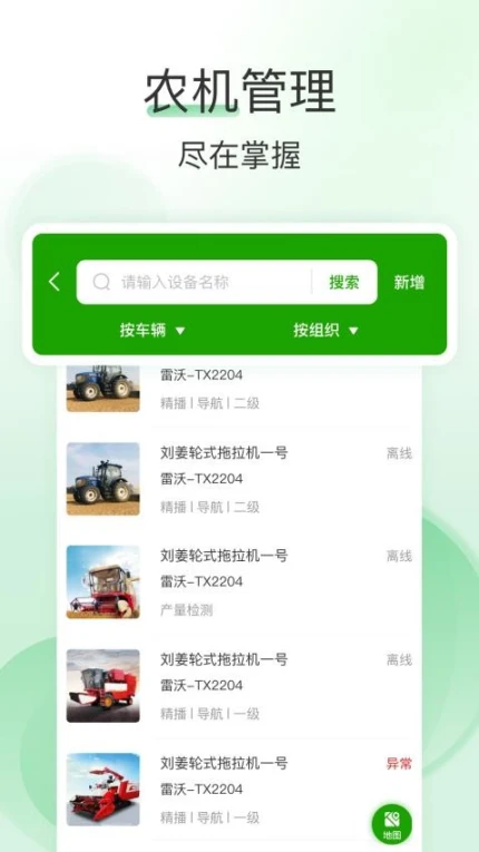 3.农机管理:用户能在线管理农机,轻松寻找所需车辆设备,提高作业效率。