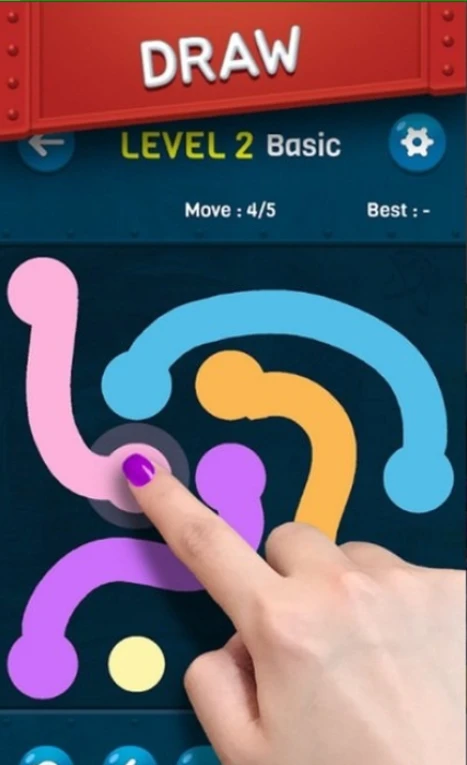 1.利用线段连接相同颜色的点,完成游戏挑战,注意每一步操作,避免失误获取奖励。