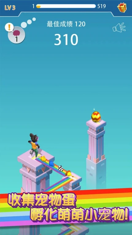 4.收集宠物蛋孵化辅助伙伴,不同宠物提供跳跃增益或护盾保护。