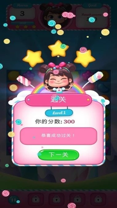 关卡中设有相应的目标糖果,玩家消除该糖果达到数量要求即可通关,目标明确。