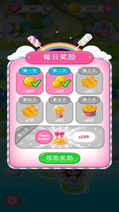 拥有多种不同类型的主题关卡,糖果界面设计各异,玩法丰富不单调。