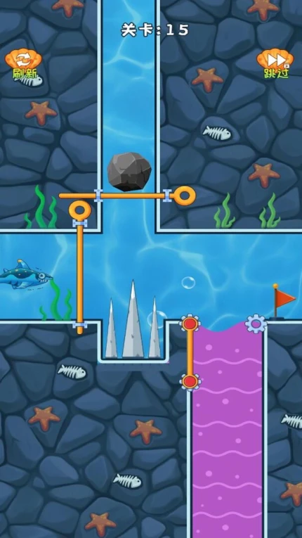 4.成功救出小鲨鱼后,即可进入下一关,挑战更复杂的场景和更高难度的任务。