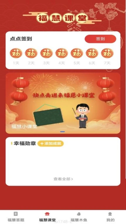 签到打卡和幸福勋章等激励机制,鼓励用户坚持学习,不断积累成就。