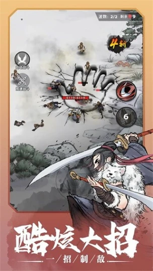 通过动态笔触与晕染技法,将水墨画卷转化为可交互的战斗场景,角色招式特效均融入飞白、皴擦等传统技法,实现视觉与武侠文化的深度结合。