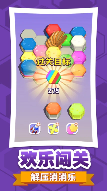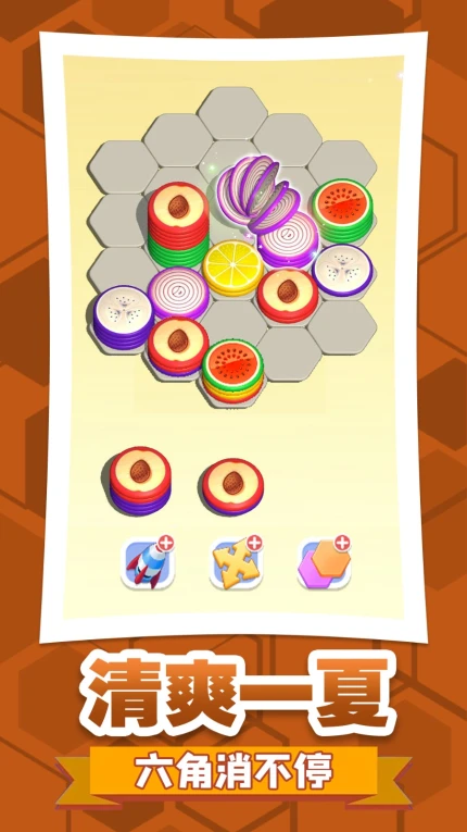 蓝天下载网为您免费提供六角消不停手游下载,这是一款极具特色的休闲益智消除游戏。六角消不停以消除为核心玩法,将六边形作为主要元素形状进行设计。在游戏中,你会在各个关卡里碰到各式各样的布局元素,水果等物品也会适时出现,营造出独特的游戏氛围。游戏有着单独的消除规则,能为玩家提供不同的体验,你可以结合规则具体情况设计最佳消除计划,清除目标物品,顺利过关。其玩法简单,在重叠方块时注意方块颜色变化,把方块放置在合适位置,就能完成具体环节考验。