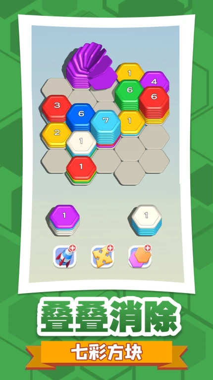 4.同色叠加消除:发现同色方块聚在一起时,可直接叠加快速消除。