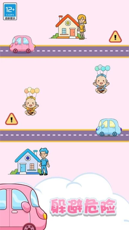 2.躲避危险环节,宝宝用气球时要留意车辆,增加游戏紧张感。