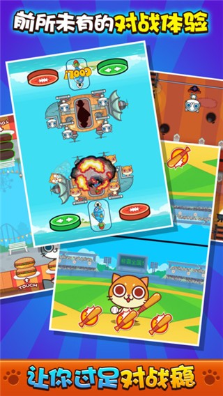 喵喵大作战是一款融合策略与动作的休闲益智手游,主打双人实时对战与AI单机模式。游戏场景涵盖棒球英豪、漂移之王等六大主题,玩家需操控具备独特技能的猫咪角色,通过走位、技能释放与道具收集完成目标。社交系统支持好友邀请与全球排名比拼,每日任务与成就系统提供持续奖励,强化系统则允许玩家通过资源升级角色属性,逐步解锁更高难度关卡。