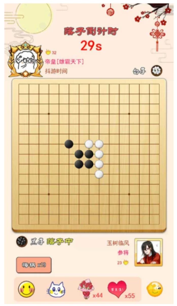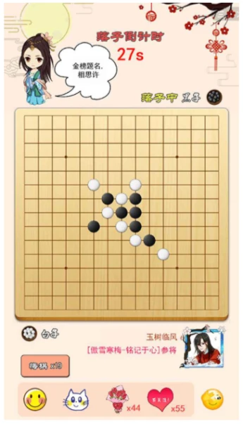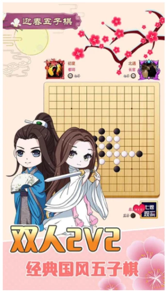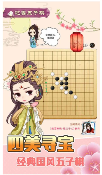 迎春五子棋是一款极具特色的休闲益智游戏,其将中国传统的古风元素巧妙融入其中,搭配唯美的卡通画风,为玩家带来别具一格的视觉体验。游戏拥有丰富多样的玩法模式,玩家可自由选择喜欢的模式进行挑战,感受不同的精彩乐趣。这里有多种个性化的棋子皮肤供玩家挑选,增加了游戏的趣味性和个性化程度。同时,游戏加入了有趣的排位赛模式,包括赛季排位和积分排位,玩家能轻松邀请好友一同对局,享受爽快的玩法。此外,还有闲情逸致的趣味玩法,如四美寻宝、组队对弈和镜像对弈,让喜欢五子棋的玩家有更多的选择,使游戏相当耐玩。