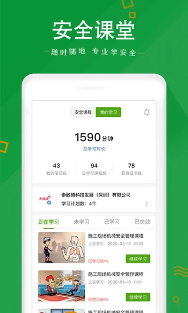 1、还有着丰富的安全教育课程,随时制定专属的个人学习计划。