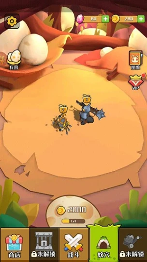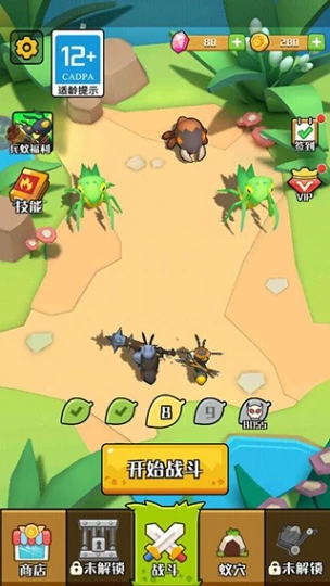 2.趣味战斗模式,收获食物为蚂蚁供能,使其积极劳动并投入各类战斗。
