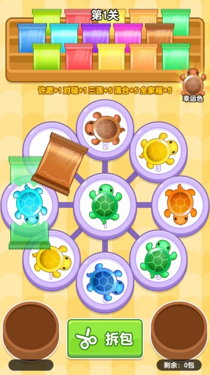 5. 成就系统:累计消除100万只乌龟可解锁金色乌龟皮肤,达成全关卡三星通关开启隐藏剧情。