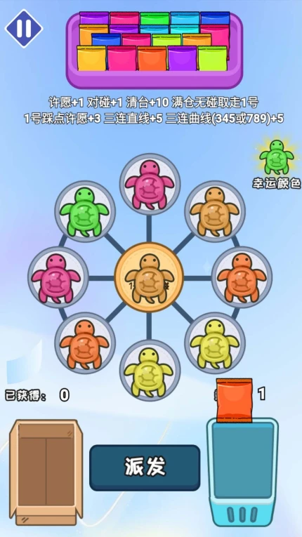 3.幸运色机制:挑战前选择幸运色可提升对应颜色乌龟的出现概率,开箱时有概率获得双倍奖励。