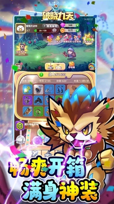 《破晓九天》是一款极具魅力的角色扮演游戏。玩家在游戏里化身为勇敢的冒险者,踏入神秘莫测的冒险世界。游戏运用精美的卡通画面,营造出舒适宜人的主题场景。玩家需勇闯世界,努力提升自身实力,完成丰富多样的任务。开启扭蛋是获取强大装备的重要途径,升级扭蛋更有机会爆出极品装备。此外,玩家还能召唤伙伴一同作战,合理搭配阵容,齐心协力击退敌人,享受爽快的冒险体验。