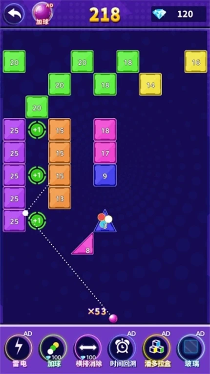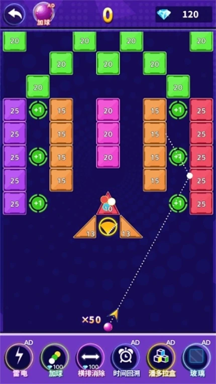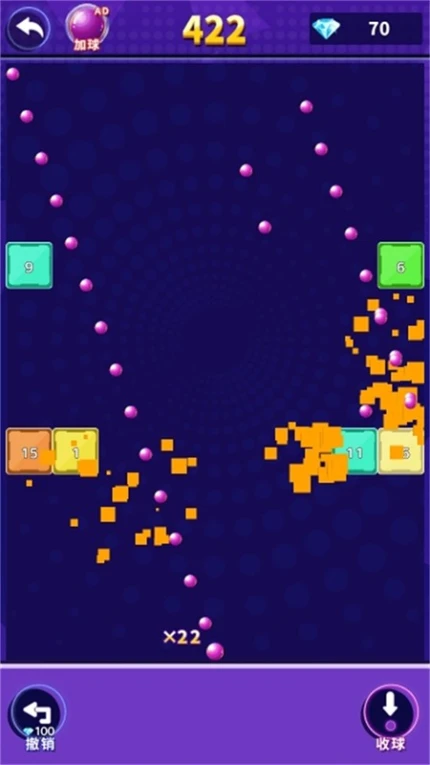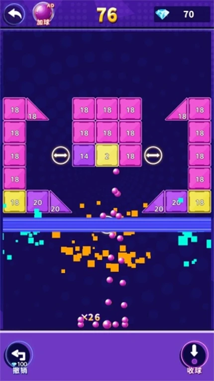 1.弹射:独特弹射玩法,玩家可通过弹射破坏更多砖块,获取更高分数。
