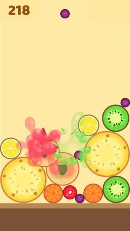 水果碰撞时伴随粒子特效与音效,合成等级提升时界面产生动态缩放效果,增强操作沉浸感。