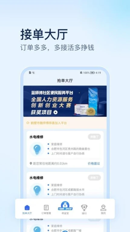 4.灵活时间管理:接单时间自主设定,支持碎片化服务时段安排。