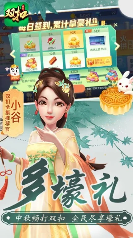 双扣全集以浙江温州传统扑克玩法为基础,创新整合全国多地区特色规则。游戏支持经典双扣、百变双扣、斗地主等十余种模式,玩家可体验多炸弹连击、贡献机制等进阶玩法。系统内置中秋节限时活动与超高倍率赛事,提供角色收集、福利礼包等养成要素。通过优化匹配算法与公平对战机制,确保玩家获得流畅的竞技体验。