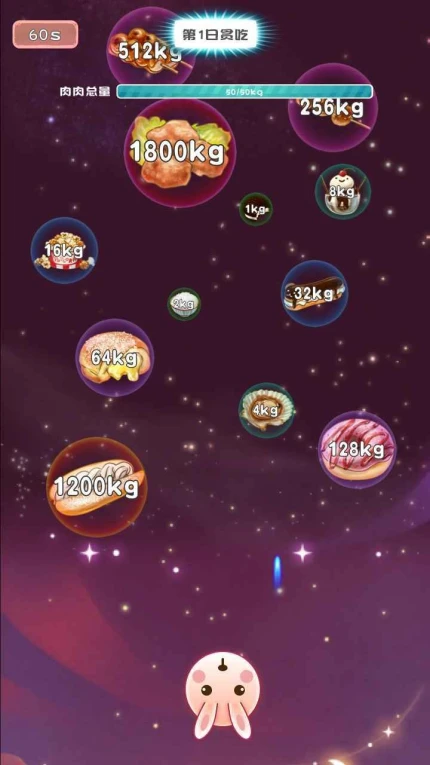 1、玩家要不断躲避肉肉,防止自己长胖。
