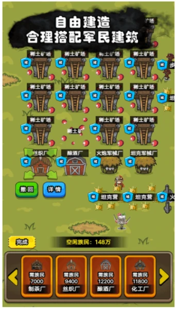 3、自由拖放建筑,派遣族民工作,建设矿场打造实业。