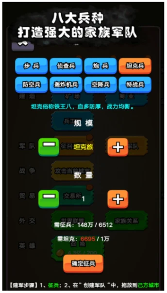 4、收集八大兵种,打造最强家族军队,完成各种任务挑战。