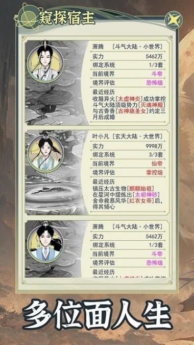 《穿越者系统:模拟》是一款极具特色的角色扮演类穿越游戏。玩家在游戏里宛如拥有神奇的穿越能力,能自由挑选宿主类型和穿越系统。进入宿主身体后,需依据宿主属性精心设计修仙方式,从而获得更多机会。游戏允许玩家同时选择多位宿主,开启丰富多彩的多位面人生。在修炼过程中,要充分考虑宿主实际能力,努力提升其境界。当宿主出现问题时,玩家可灵活选择放弃或为其更换全新系统,提升能力。游戏还不断更新宿主情况,玩家能根据经历选择体验之旅,获取更多资源。总之,这是一款玩法丰富、充满挑战的修仙游戏,值得玩家一试。