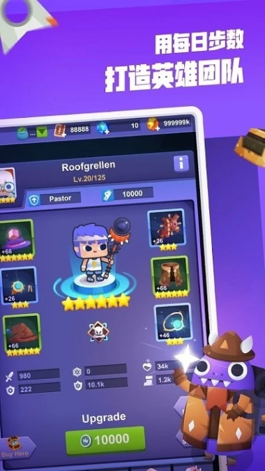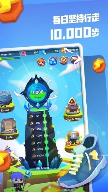 1.通过走路训练勇士,步数越多勇士越强,努力成为最强玩家。