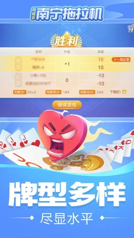 根据南宁当地规则研发,与贵港升级相像,规则容易掌握,新手玩家也能快速上手。