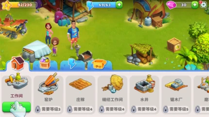2.构建基础结构,建造重要建筑处理资源,为村庄打造地基,生产新事物。